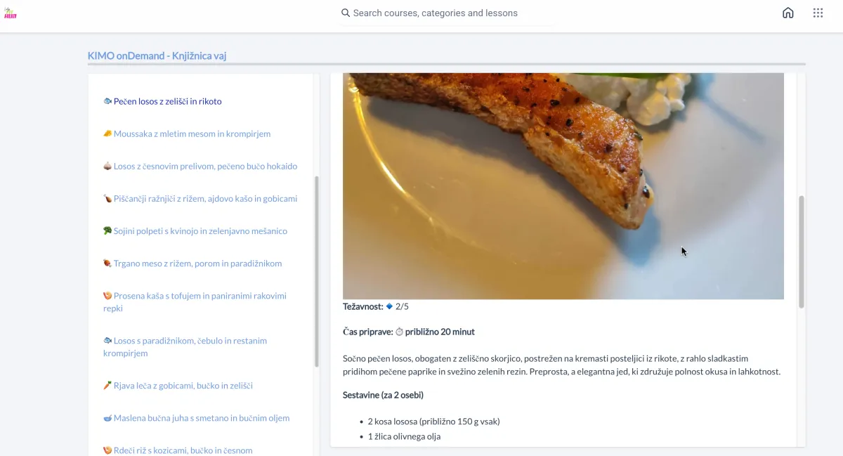 Dobrodošla v KIMO On-Demand – tvoji osebni digitalni knjižnici vaj, treningov in receptov.